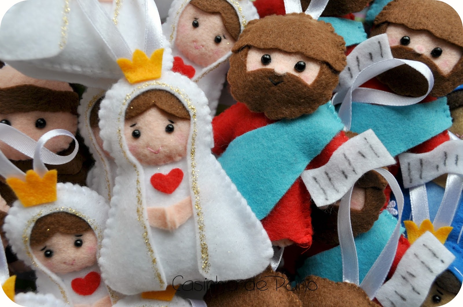 São Francisco, Santo Antônio, São Marcos, Nossa Senhora Aparecida, Nossa Senhora de Fátima e Mãezinha do Céu. Pedido da Helga, que foram para enfeitar a árvore de Natal também.